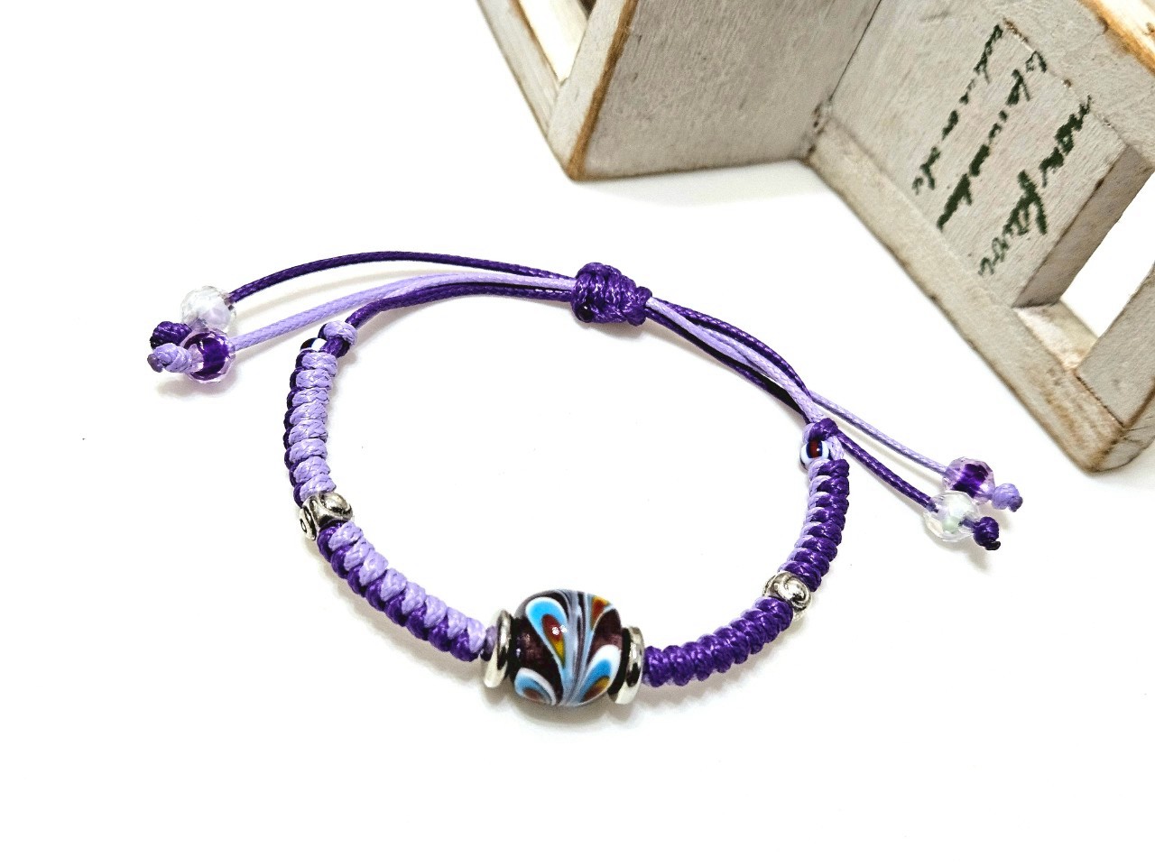 琉璃珠手鍊金剛結系列-Glass Beads Bracelet 紫色孔雀之珠