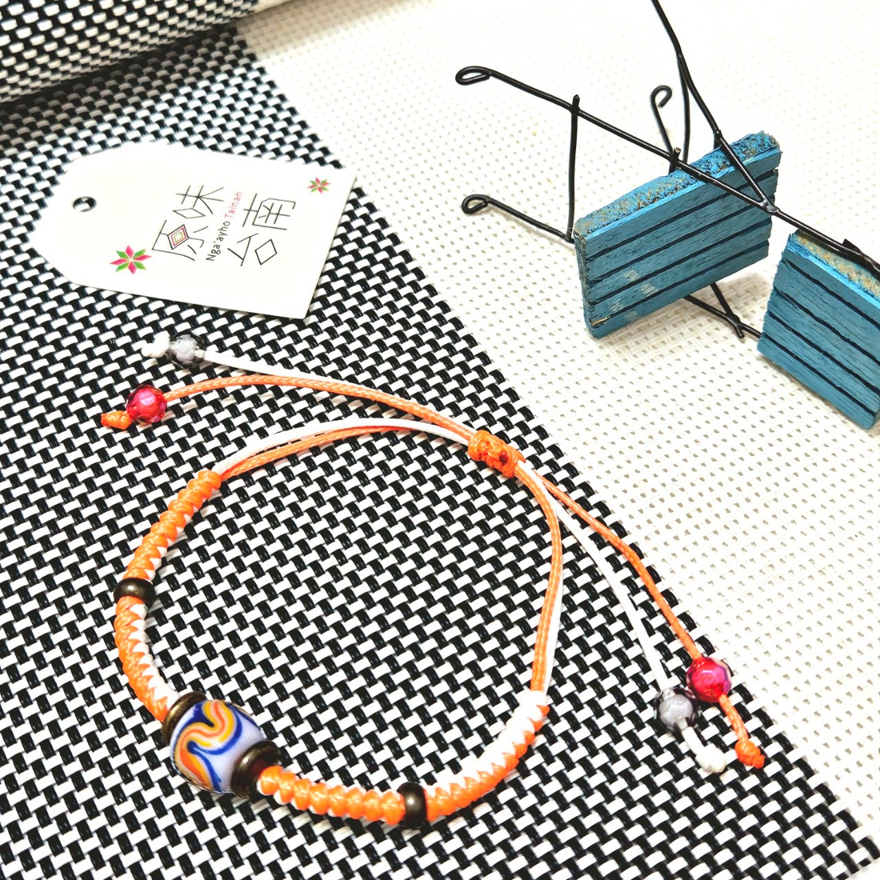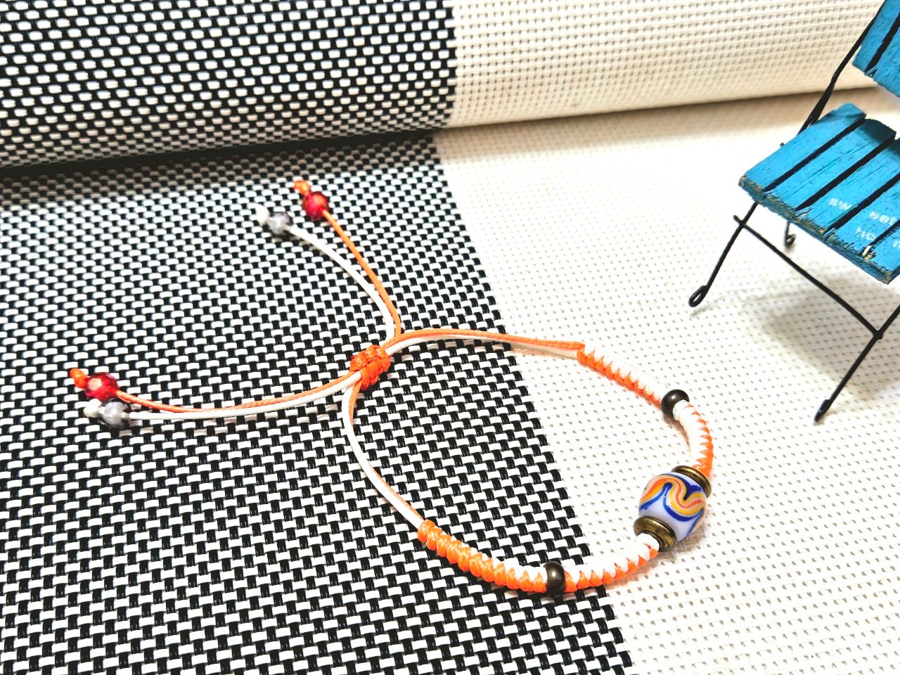 商品使用線條編織方式與琉璃珠做結合,尺寸也能依個人手圍調整,是個可以送禮也能自己配戴的飾品喔。