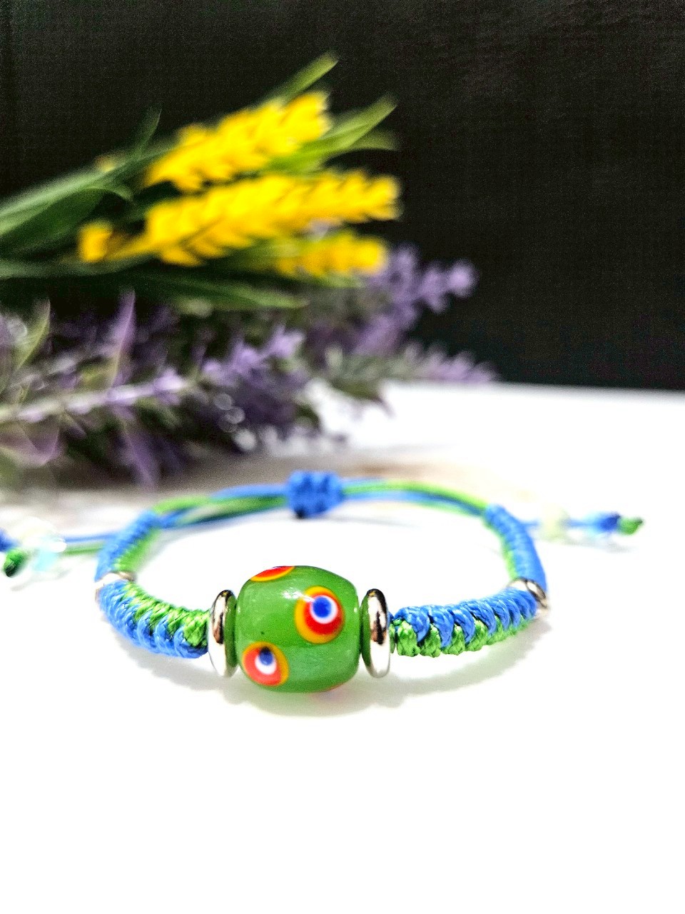 琉璃珠手鍊金剛結系列-Glass Beads Bracelet 綠色眼睛之珠
