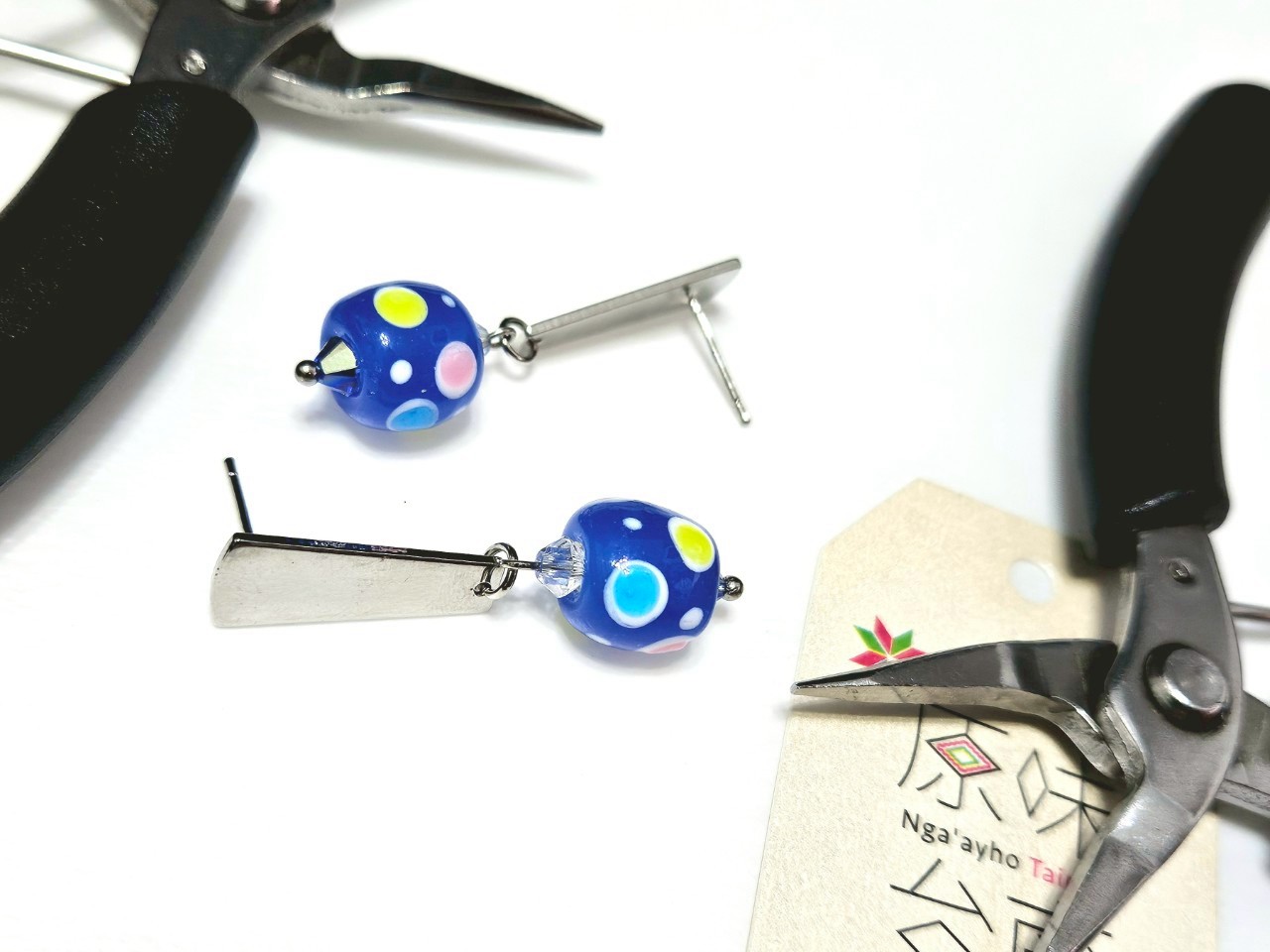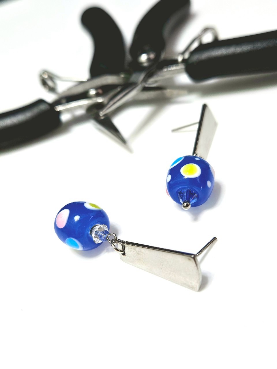 【琉璃珠系列耳環】 Glass Beads   Earrings   淺藍色天牛之珠