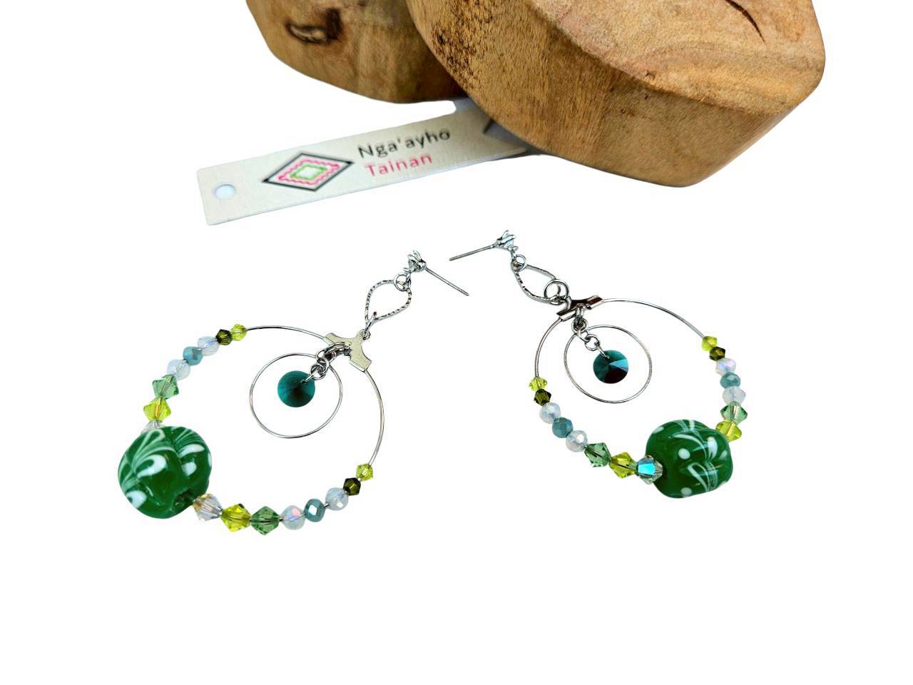 琉璃珠系列耳環-Glass Beads Earrings 綠色月牙、孔雀之珠