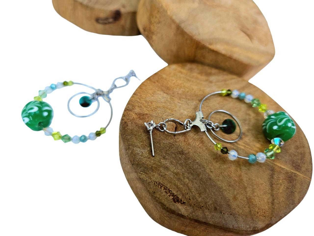 【琉璃珠系列耳環】-Glass Beads Earrings 綠色月牙、孔雀之珠