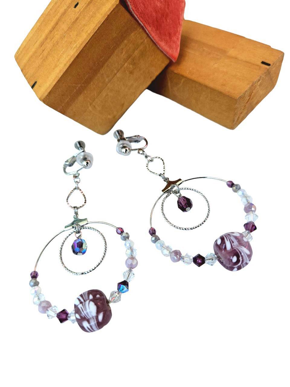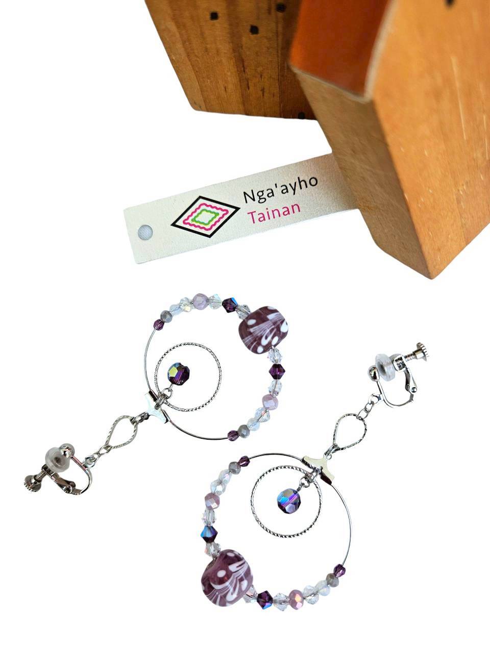 琉璃珠系列耳環-Glass Beads Earrings 透紫色月牙、孔雀之珠