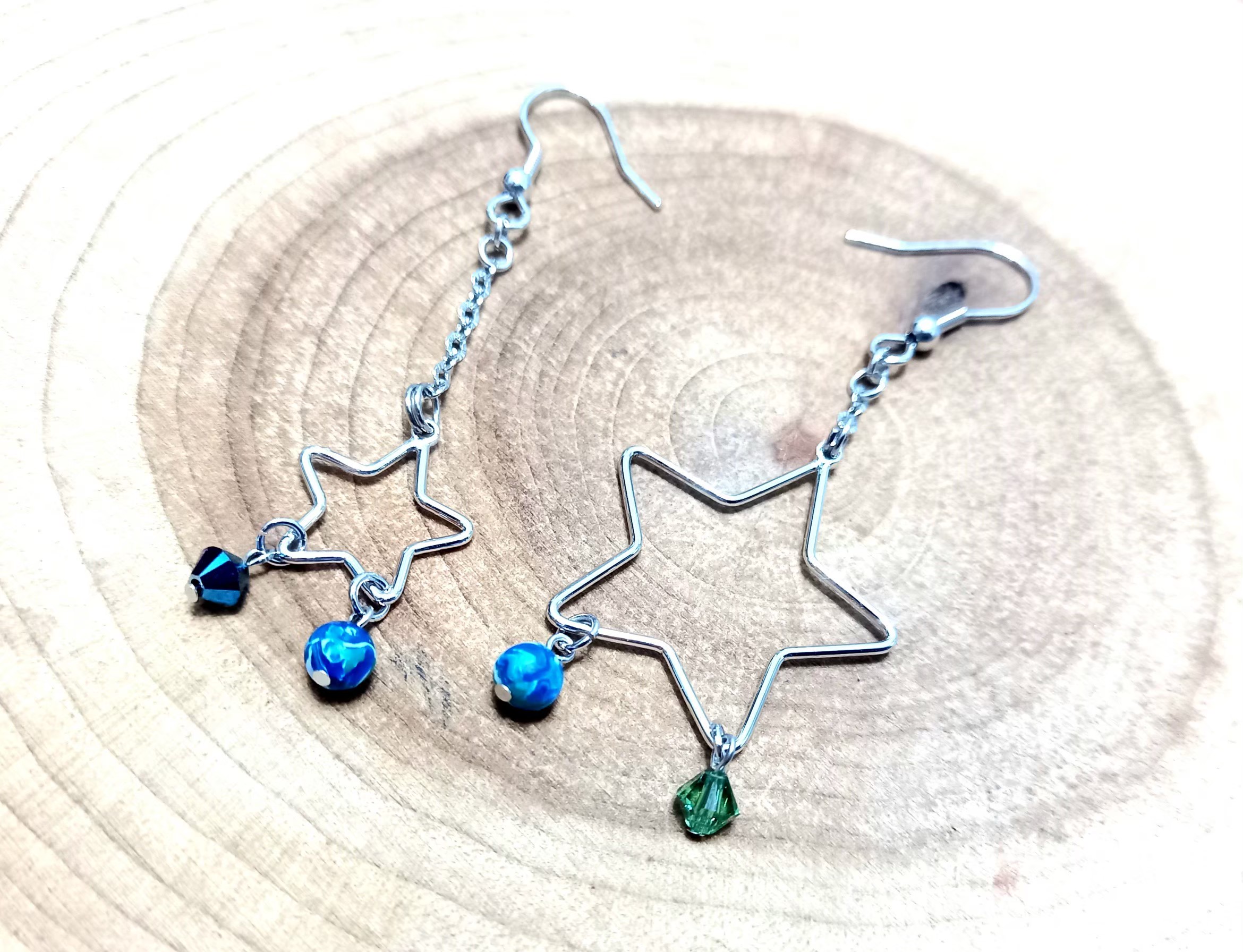 地球系列-軟陶耳環Polymer Clay Earrings【不對稱星型】