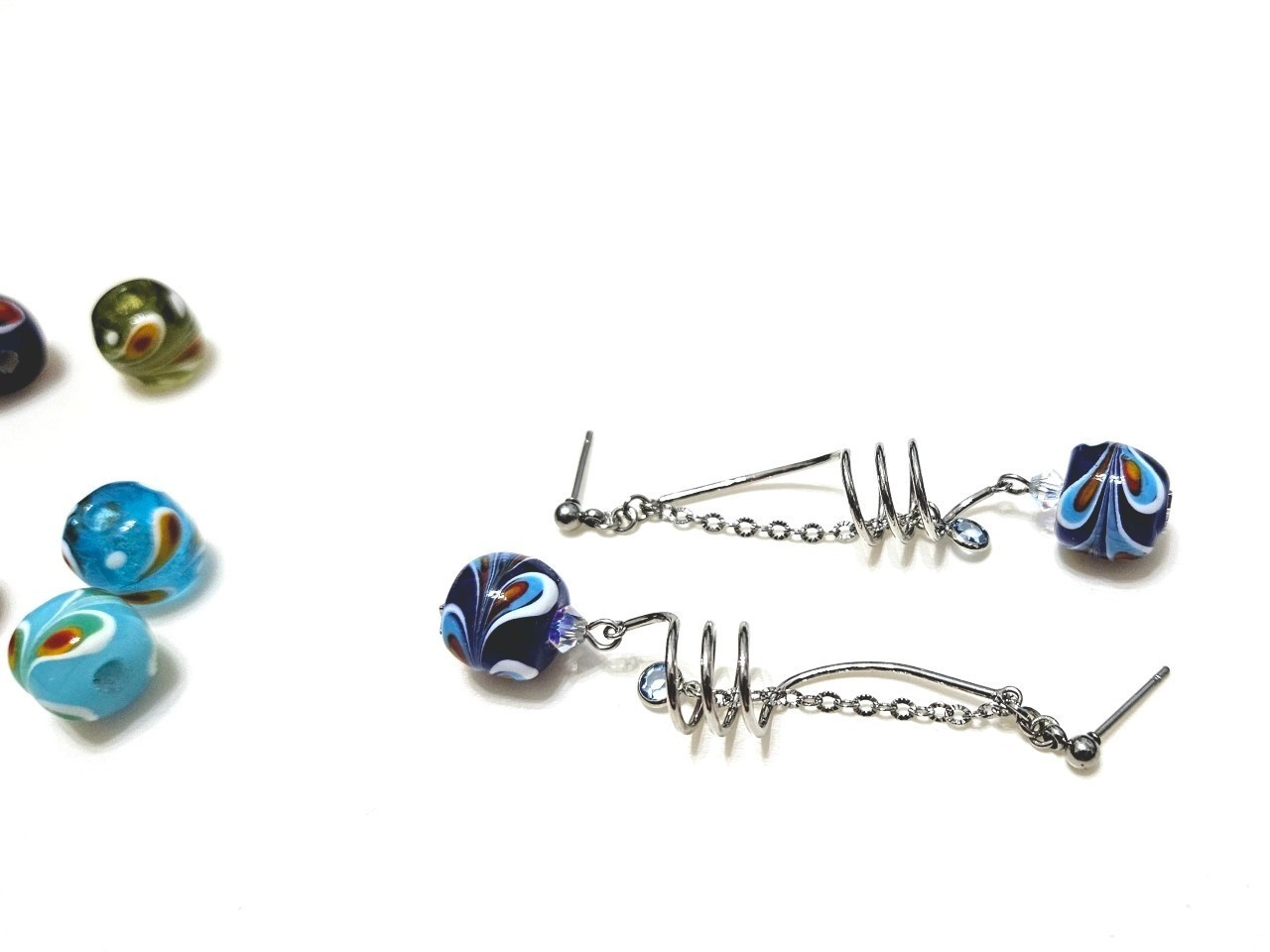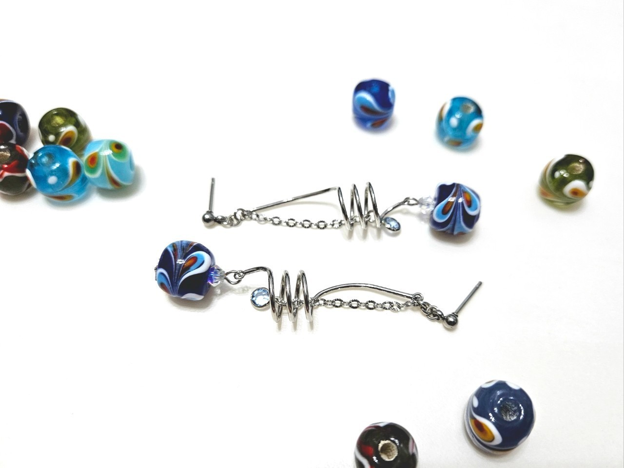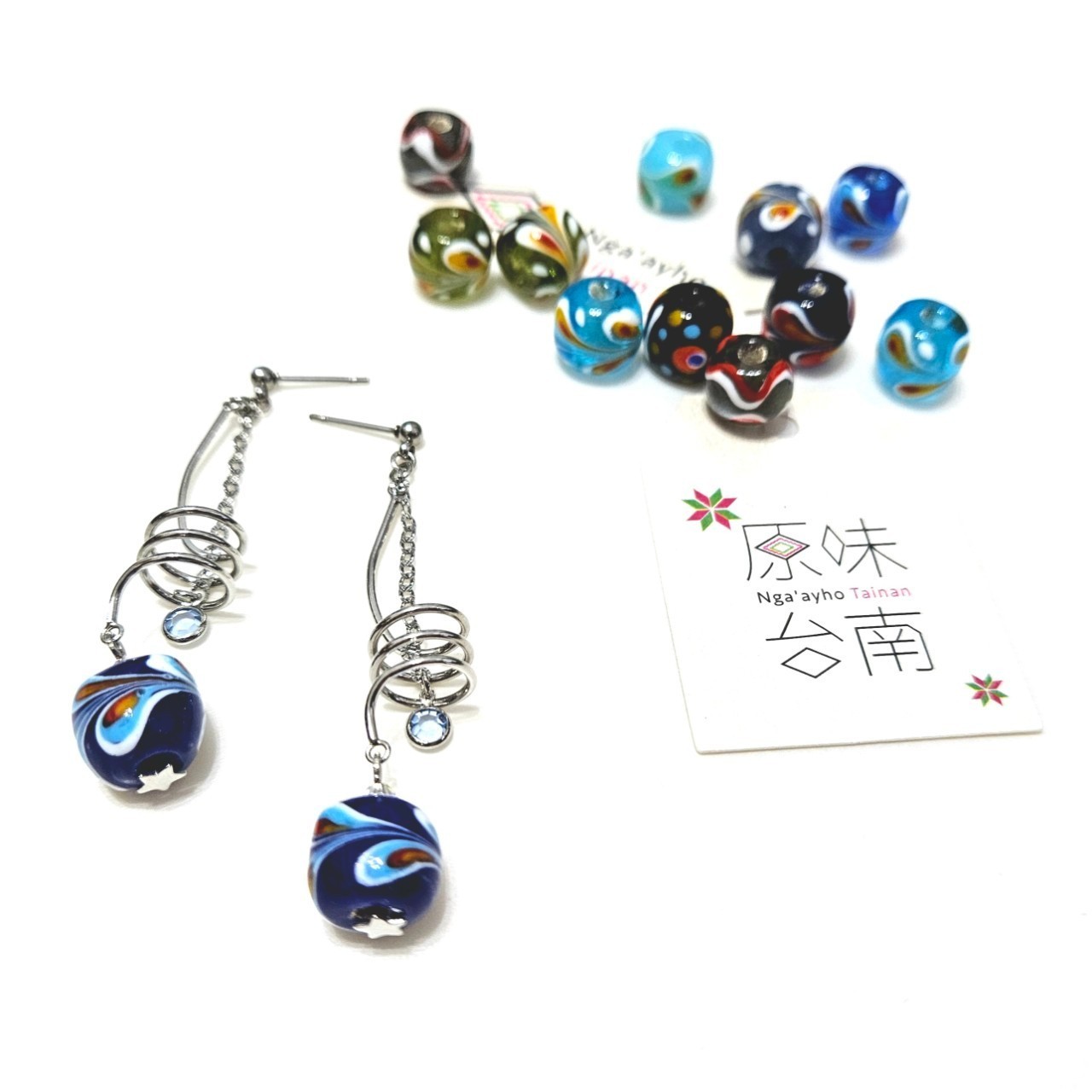 【琉璃珠系列耳環】-Glass Beads Earrings-孔雀之珠