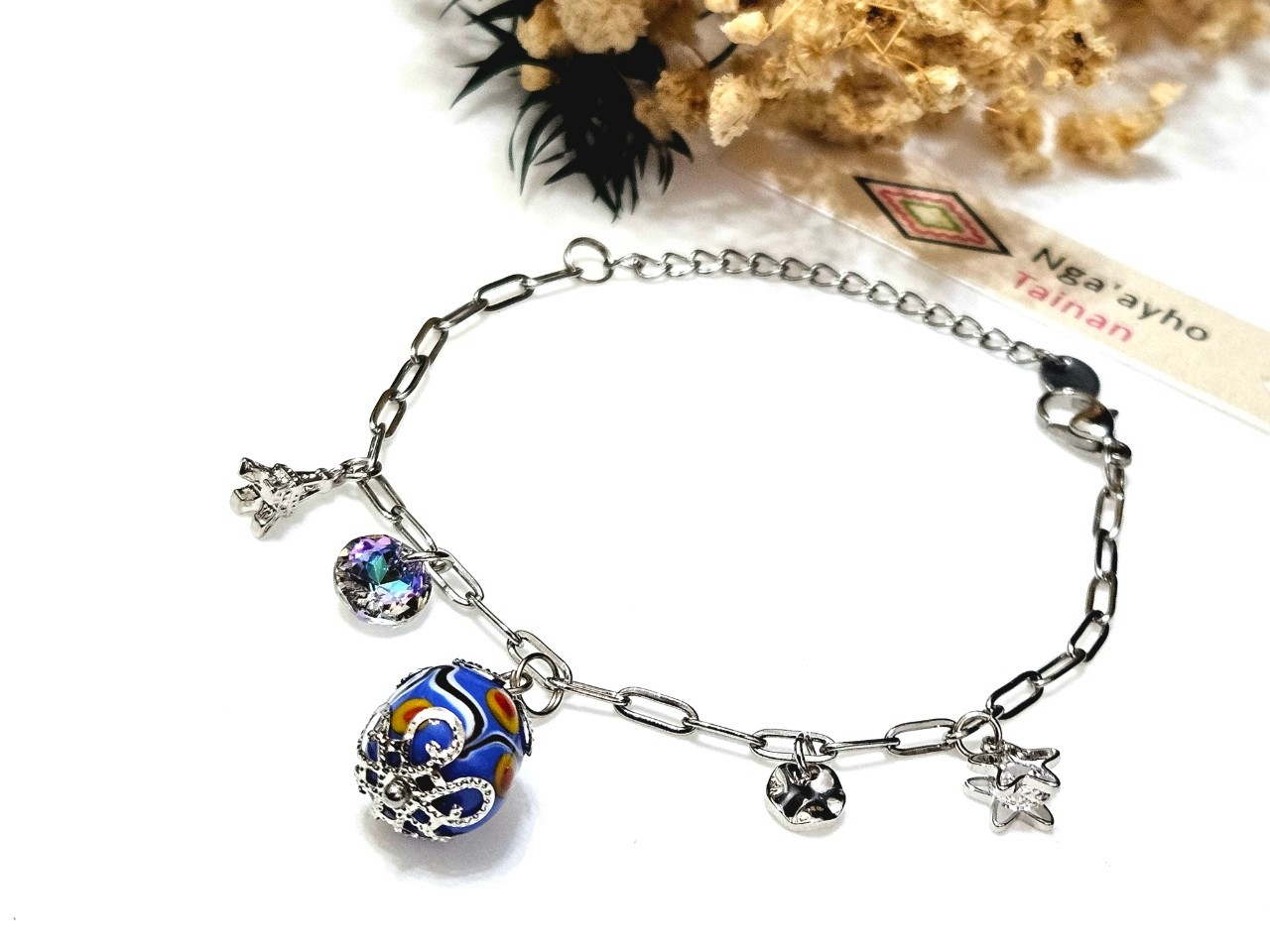 Each of the glass beads represents different meanings and stories, symbolizing the blessings of the indigenous beliefs. Through the combination of crystal and metalwork, the design perfectly keeps the traditional cultural values.