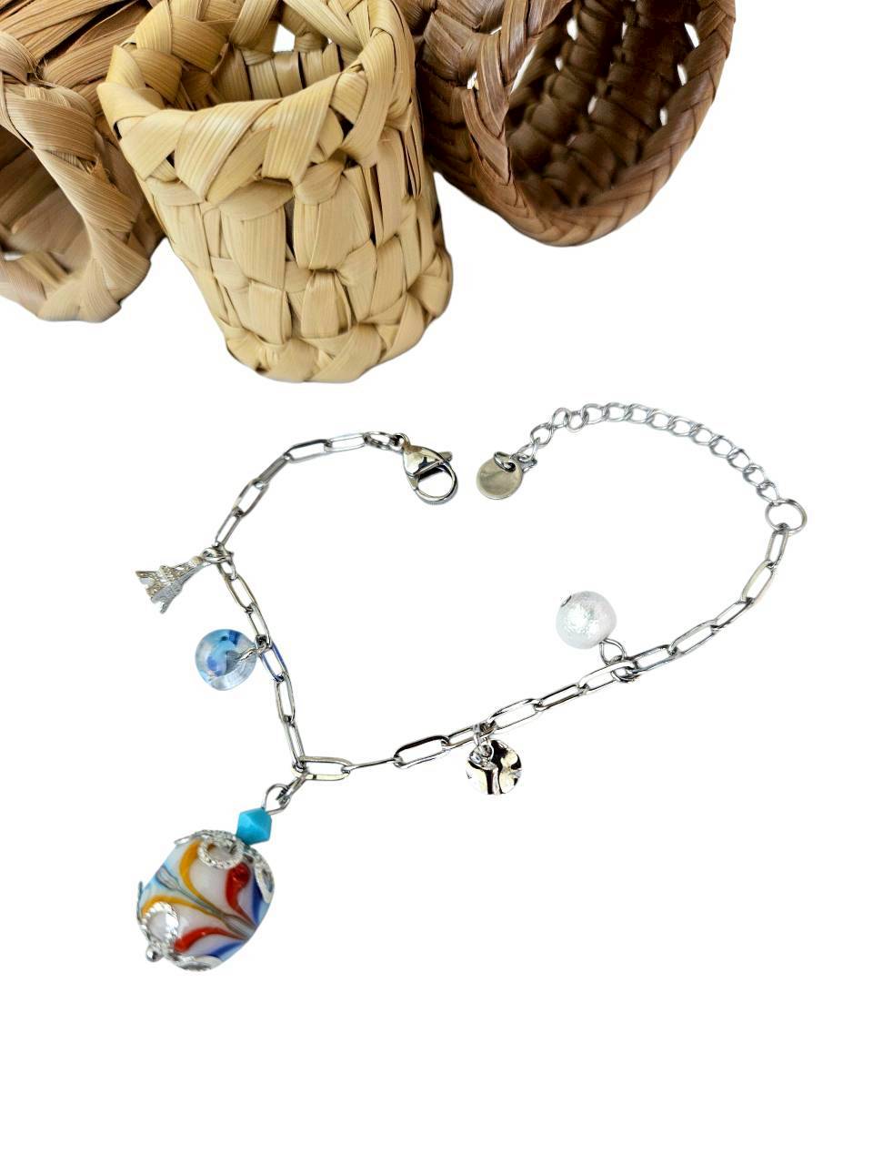 【琉璃珠系列手鍊】- Glass Beads Bracelet 白色孔雀之珠