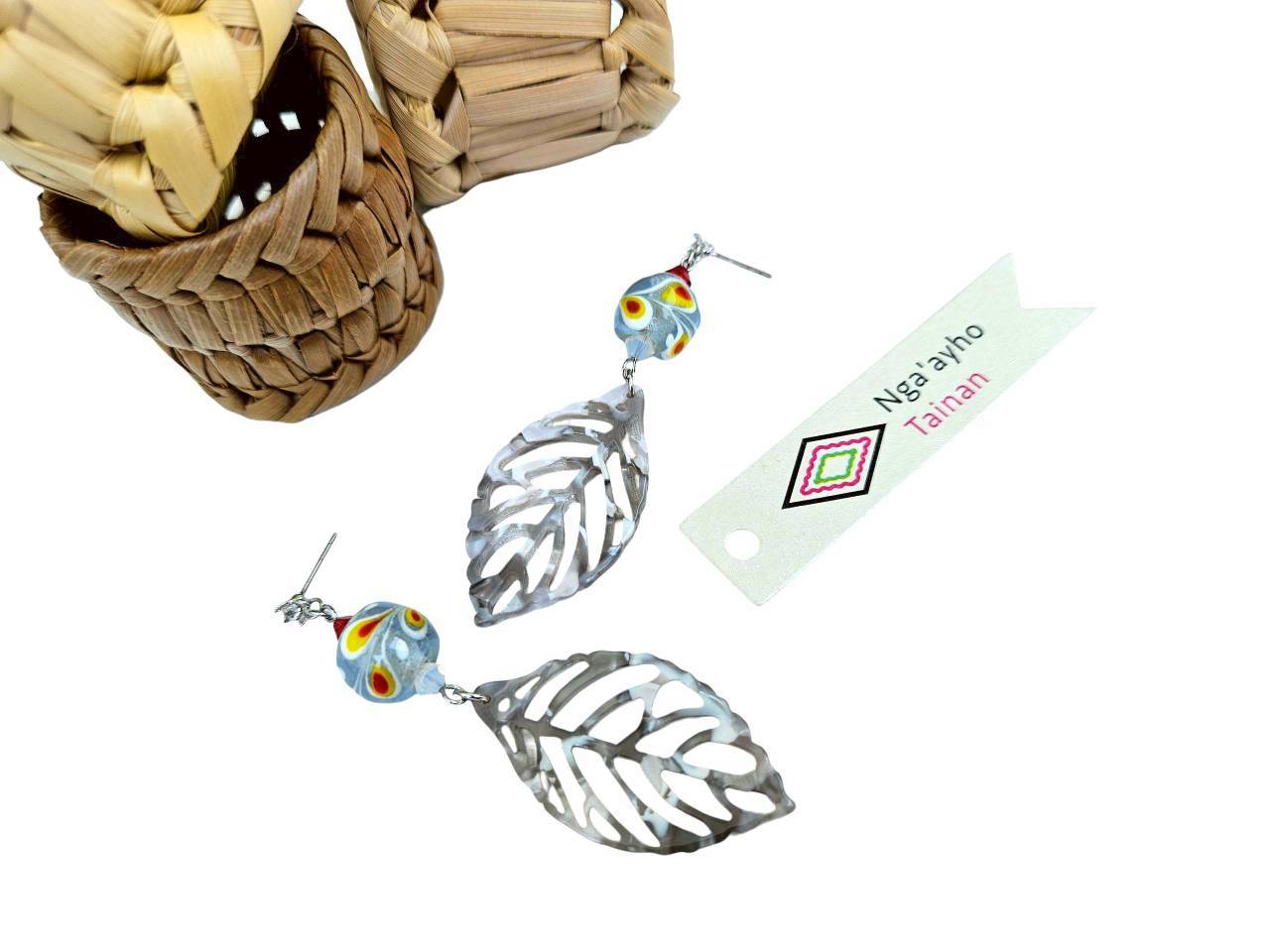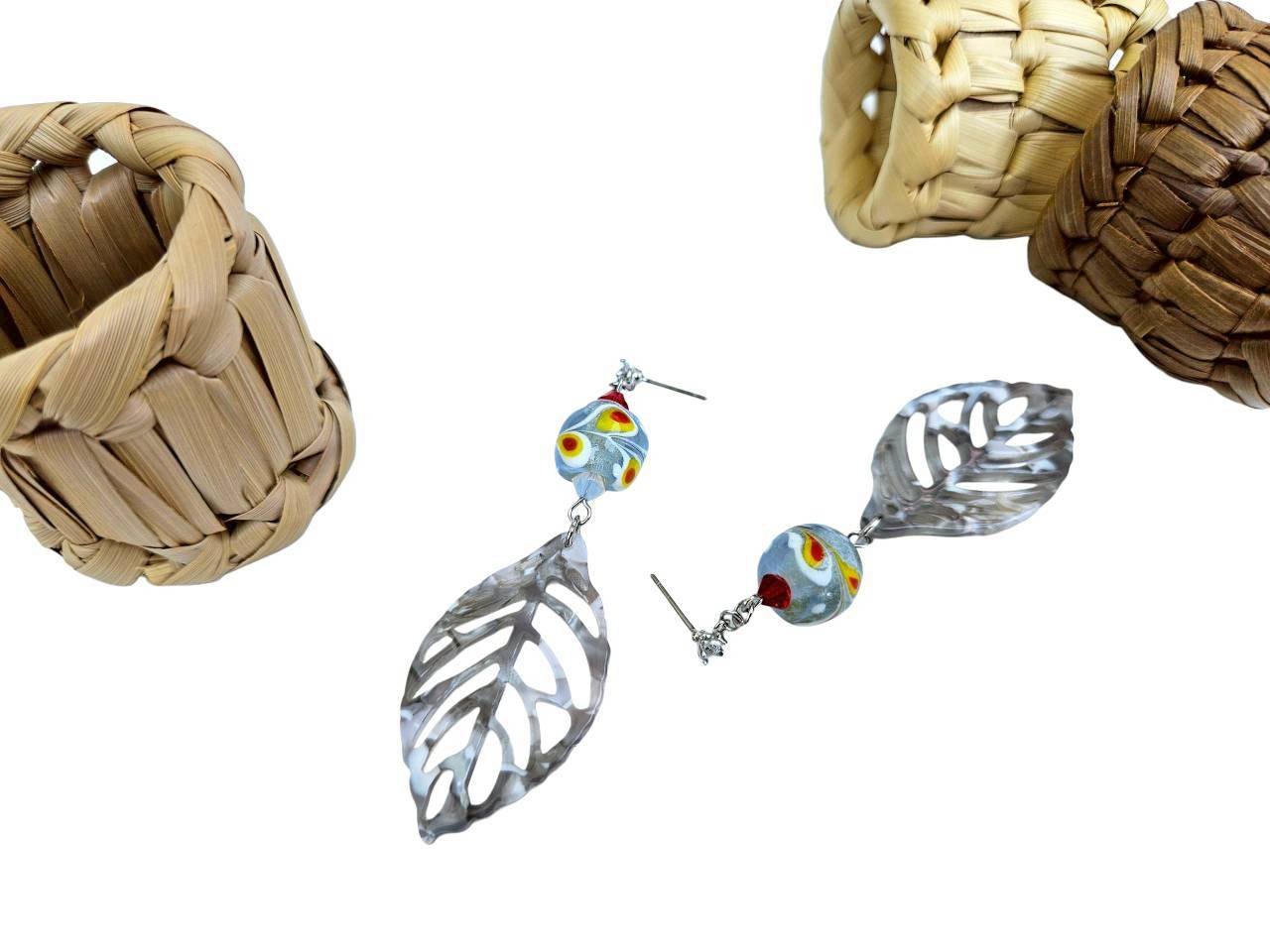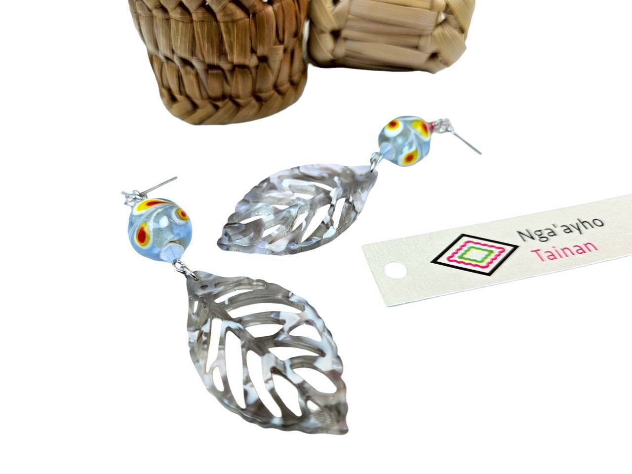 琉璃珠葉子系列耳環-Glass Beads Earrings 透明孔雀之珠